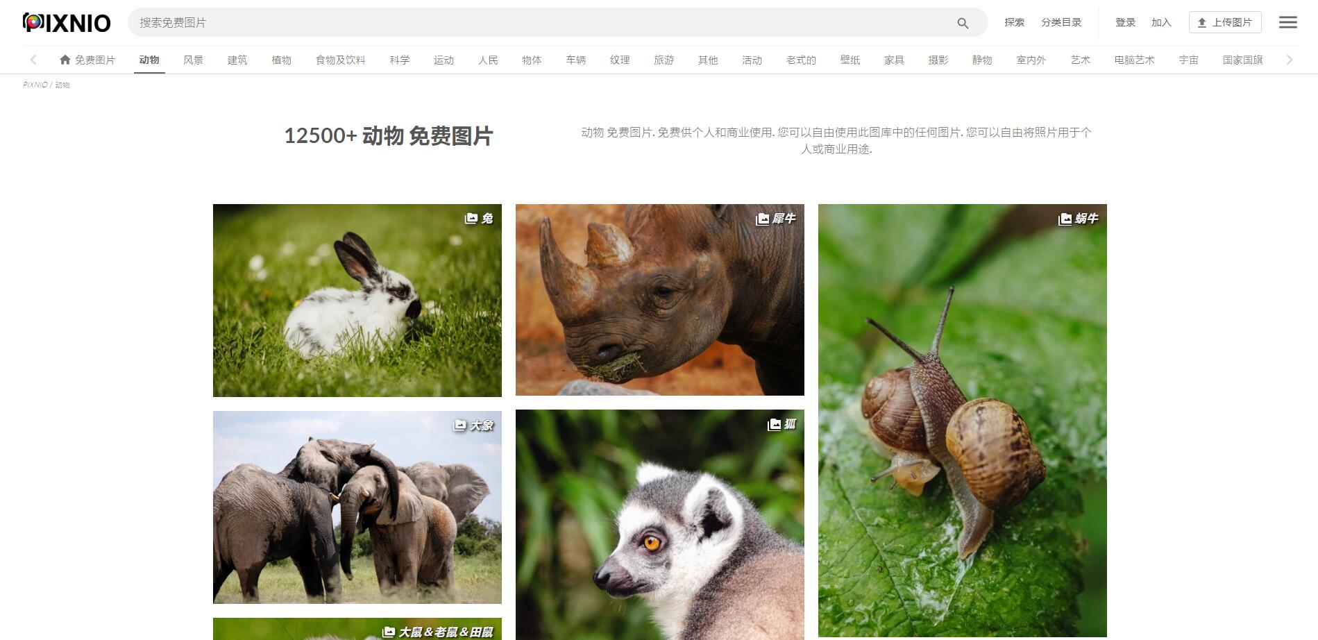 Pixnio提供了上万张可以免费使用的图片,且其中的大多数图片拍摄精美。下载图片有两种方式,一种是通过关键词搜索找到自己想要的图片并下载。另一种可以通过顶部的分类来选择自己想要的图片。相比其他的图库,如点击动物,还会出现细分的兔子、犀牛等分类,Pixnio分门别类工作做的相当的细致。