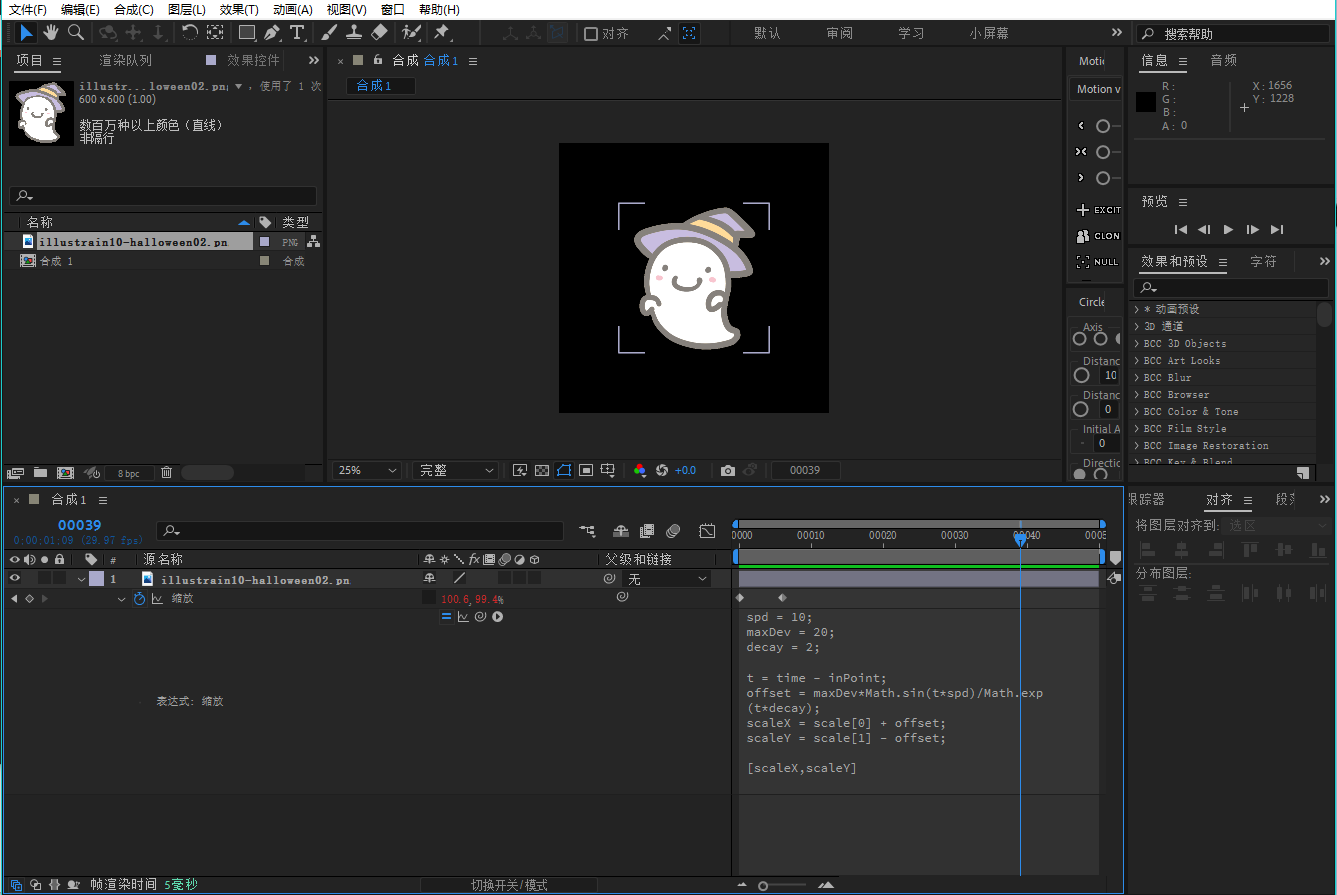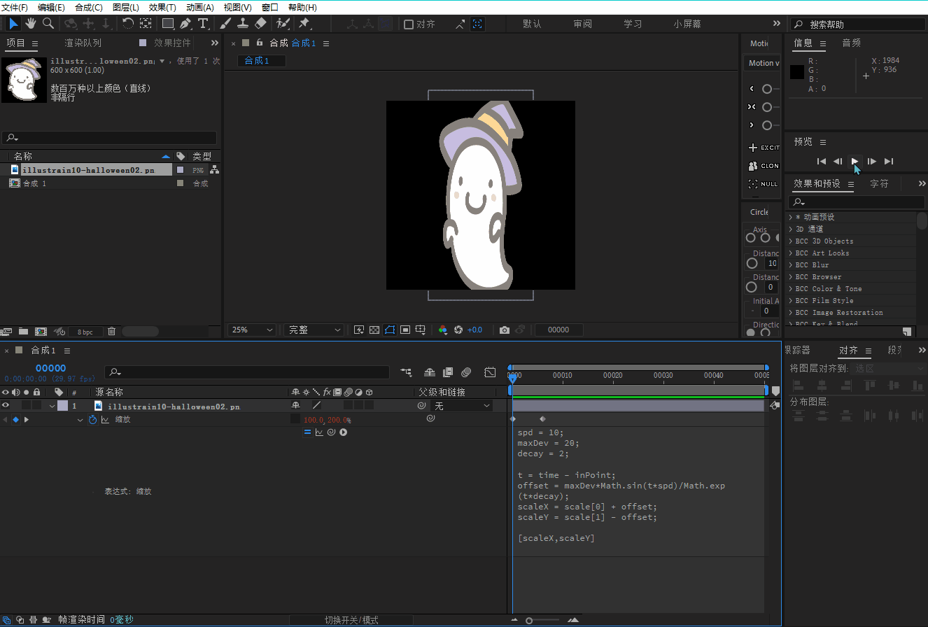 4.观察一下现在的缩放效果,这是区别于弹性表达式的另一种果冻效果。